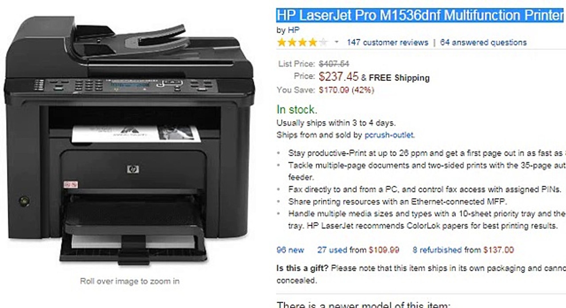 5% coupon applied at checkout save 5% with coupon. It offers usb 2.0 and 10/100 ethernet connections, an automatic document feeder. User rating, 4.3 out of 5 stars with 240 reviews. Hp laserjet pro m1536dnf multifunction printer. 5% coupon applied at checkout save 5% with coupon.